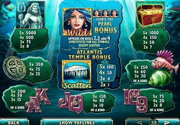 Слот-машина продемонстрирует игрокам все богатства затерянного мира. А помогают завладеть ими особые символы – Вайлд и Скаттер. Ими стали изображения Русалочки и затопленного храма соответственно. Вайлд заменяет любой элемент, чтобы создать новую комбинацию. Также этот символ запускает бонусную игру. В ней геймерам будут начислены выплаты за выбранные жемчужины. Скаттеры активируют раунд из фриспинов. Их количество и множители игроки выберут самостоятельно.